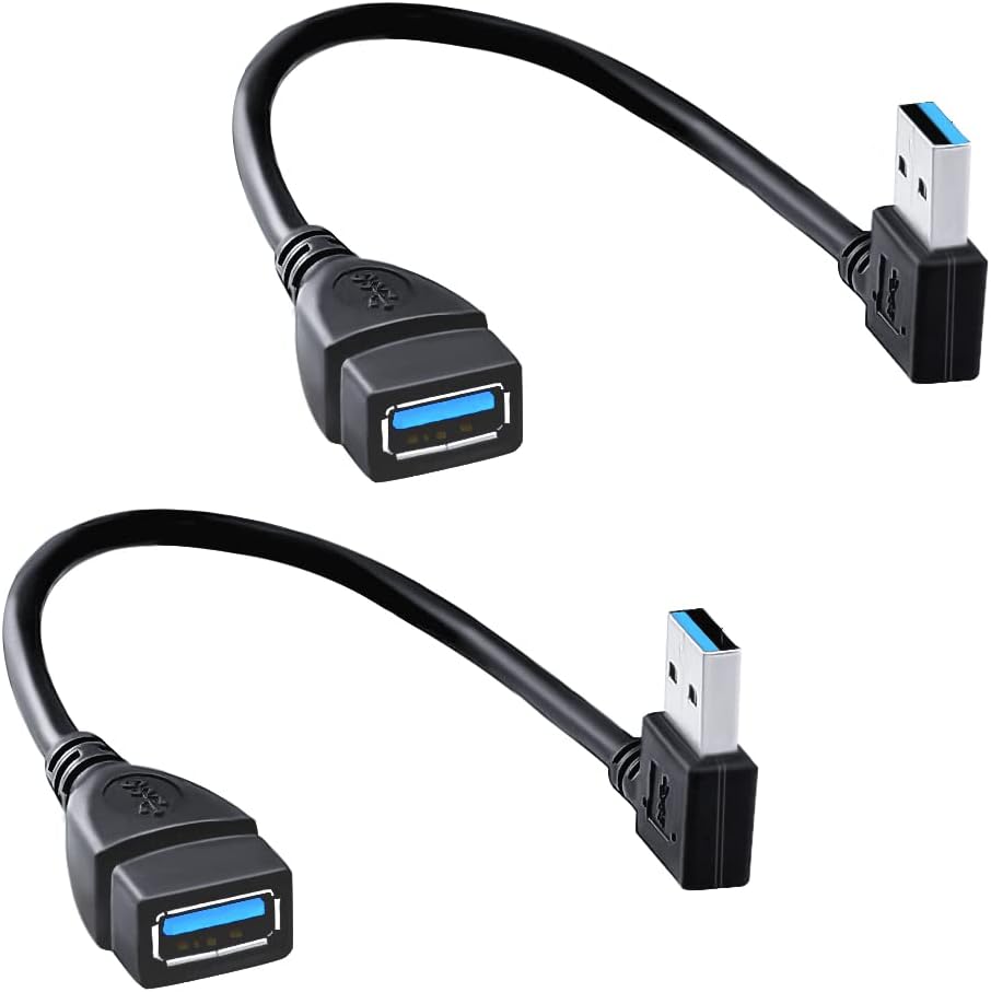 2-Pack 20cm USB Male to Female Extension Cable | 90-Degree Angled Connector | Flexible & Durable USB 2.0 Adapter Cord
