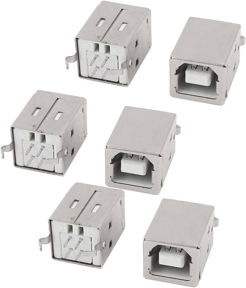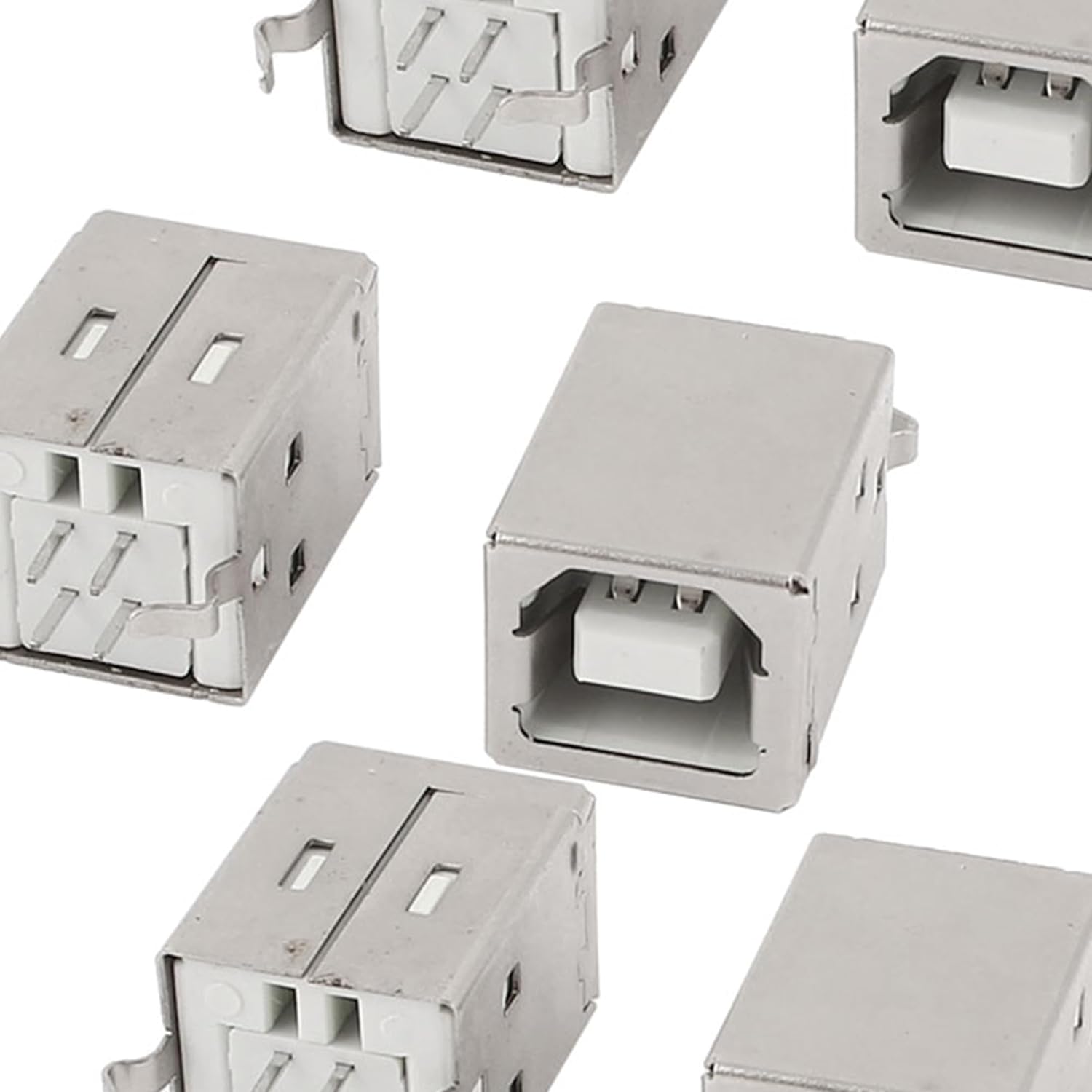 6-Pack USB-B Female Socket Connectors | USB 2.0 Type-B 4-Pin Square Receptacle Interface