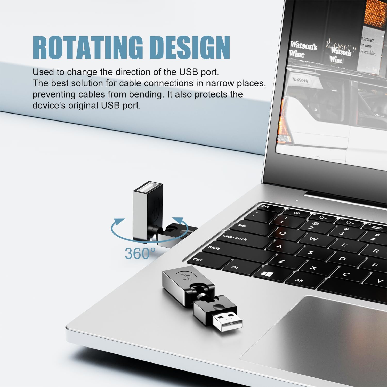 Swivel USB Adapter – USB Male to Female Converter with 360° Rotation & 180° Folding for Tight Spaces