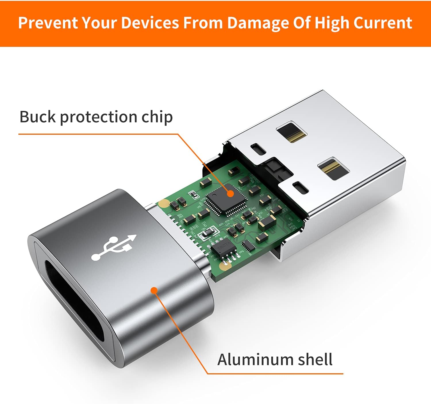 USB-A to USB-C Adapter (4-Pack) – Compact Aluminum Alloy Type-C Converter, OTG Compatible for Laptop, Car Charger, USB Hub, Flash Drive, Headphone & More