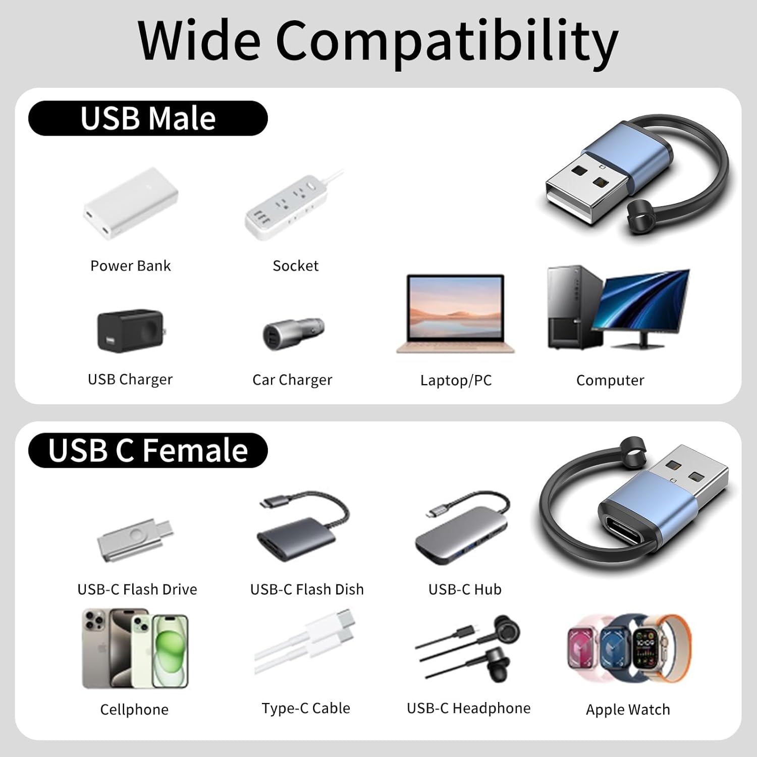 The USB 2.0 standard ensures a transfer speed of up to 480Mbps, enabling fast data transfers for files, music, videos, and more. Compatible with laptops, desktops, car chargers, wall adapters, and power banks, it supports a wide range of USB-C devices including smartphones, tablets, flash drives, gamepads, and headphones.