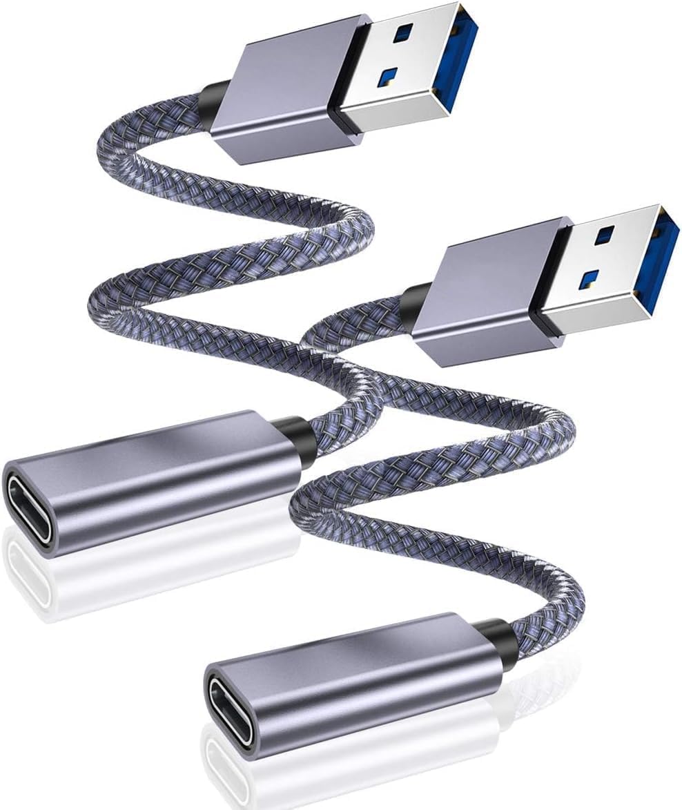USB-C Female to USB 3.1 Male Adapter Cable – 8.8 inch Nylon Braided Cord | High-Speed Transfer | Compatible with Smartphones, Tablets, Flash Drives, and More